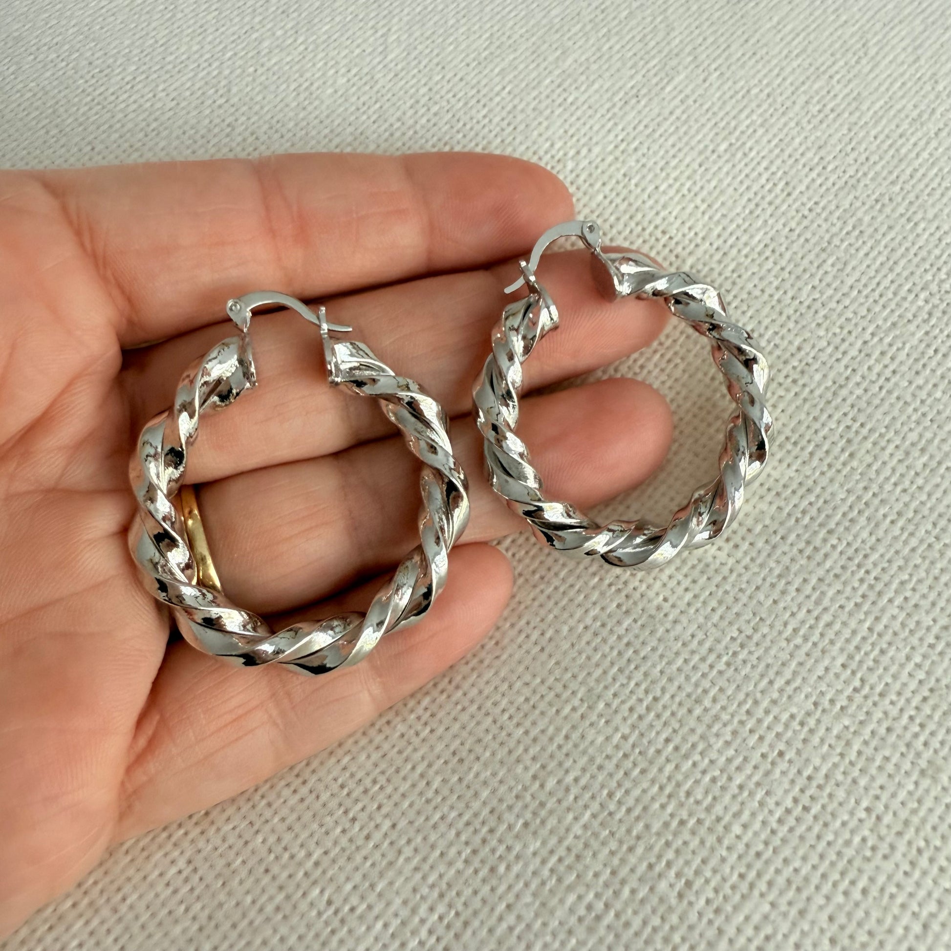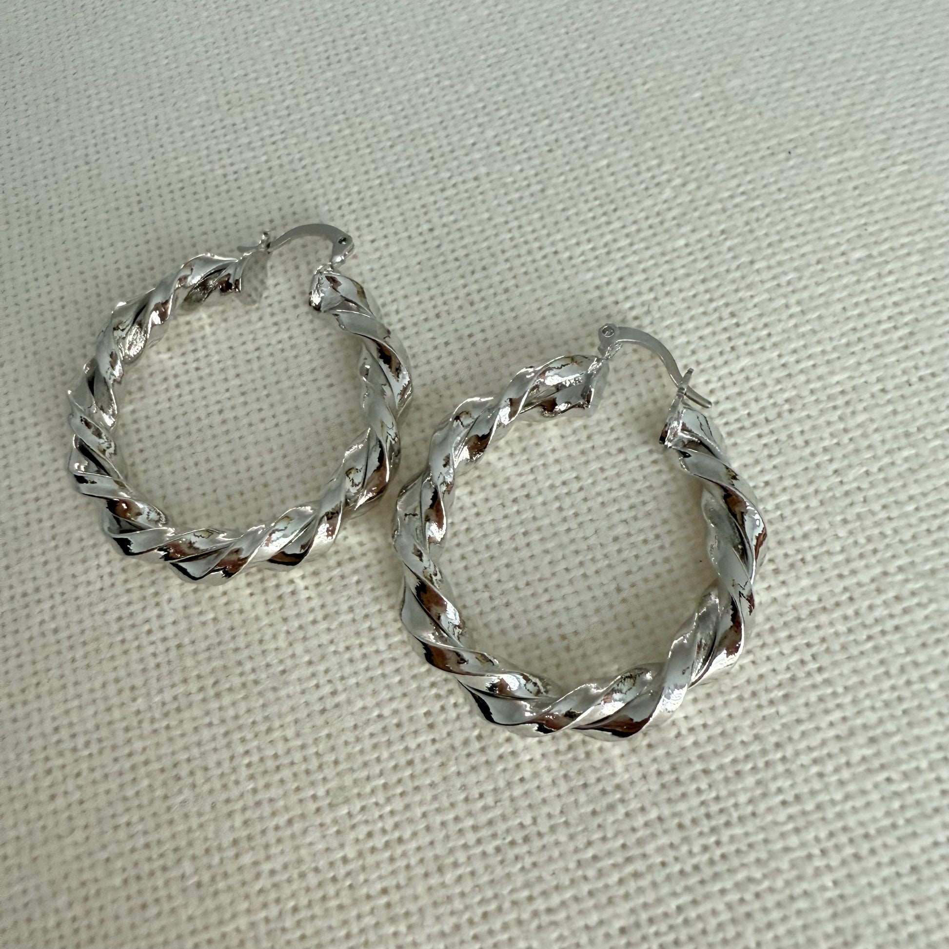 Ces créoles chics plaquées rhodium présentent un design élégant et contemporain qui rehausse sans effort n'importe quelle tenue.