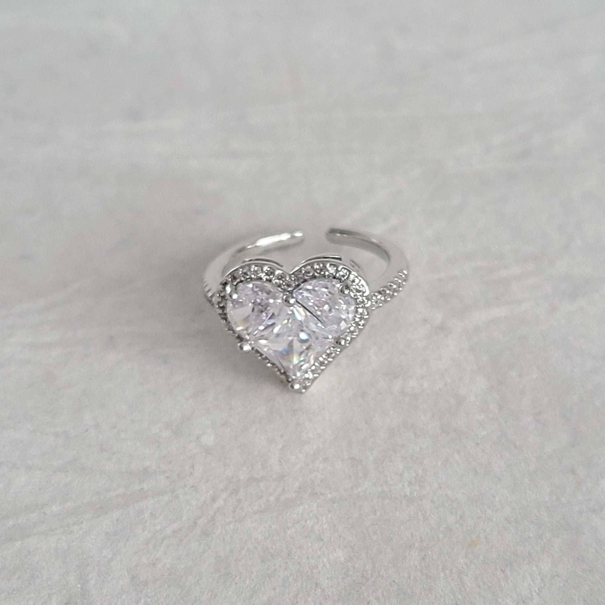 This adjustable Rhodium ring, a precious metal derived from platinum, combines luxury and resilience in a single piece. Its silver finish with a delicate crystal heart, gives it an exceptional, long-lasting shine.