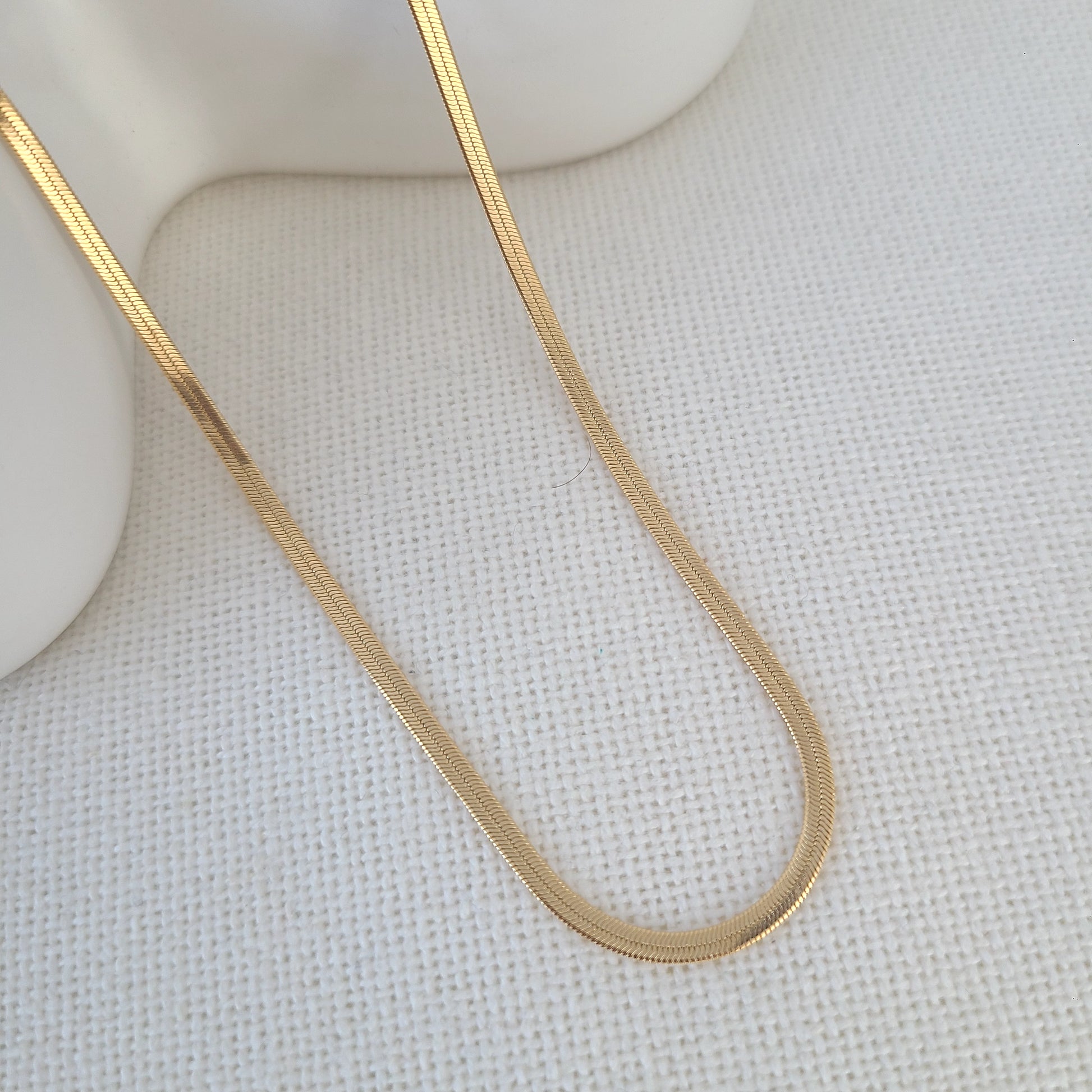 Une chaîne plate et polie plaquée or 24 carats — radieuse et raffinée, idéale pour l'élégance au quotidien ou à superposer avec vos pièces préférées.