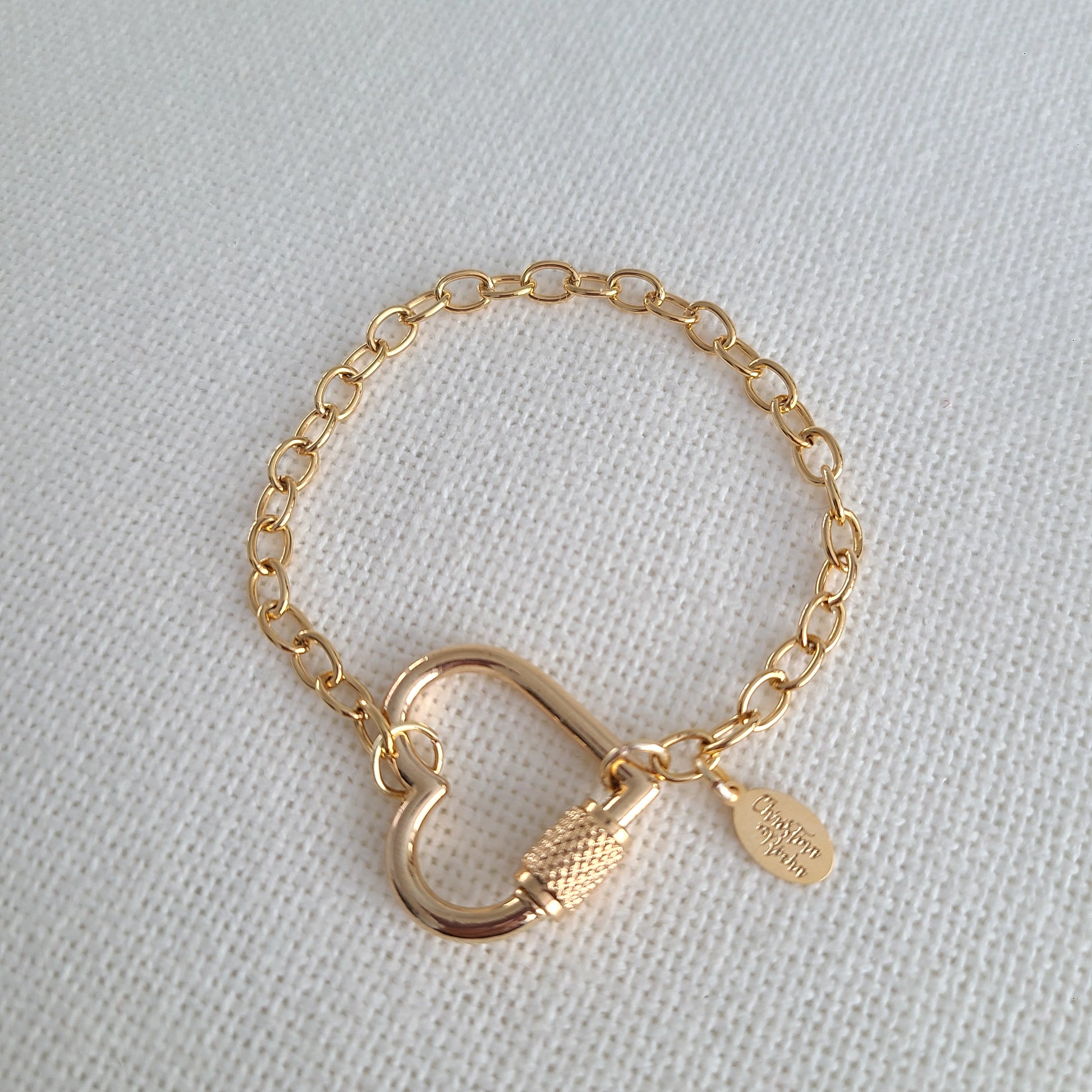 Élégant et polyvalent, ce bracelet en chaîne en or rempli 14 carats fait à la main est doté d'un charmant fermoir en forme de cœur qui se distingue également comme une pièce maîtresse décorative. Un design unique et original qui allie style et praticité, parfait pour toutes les occasions.