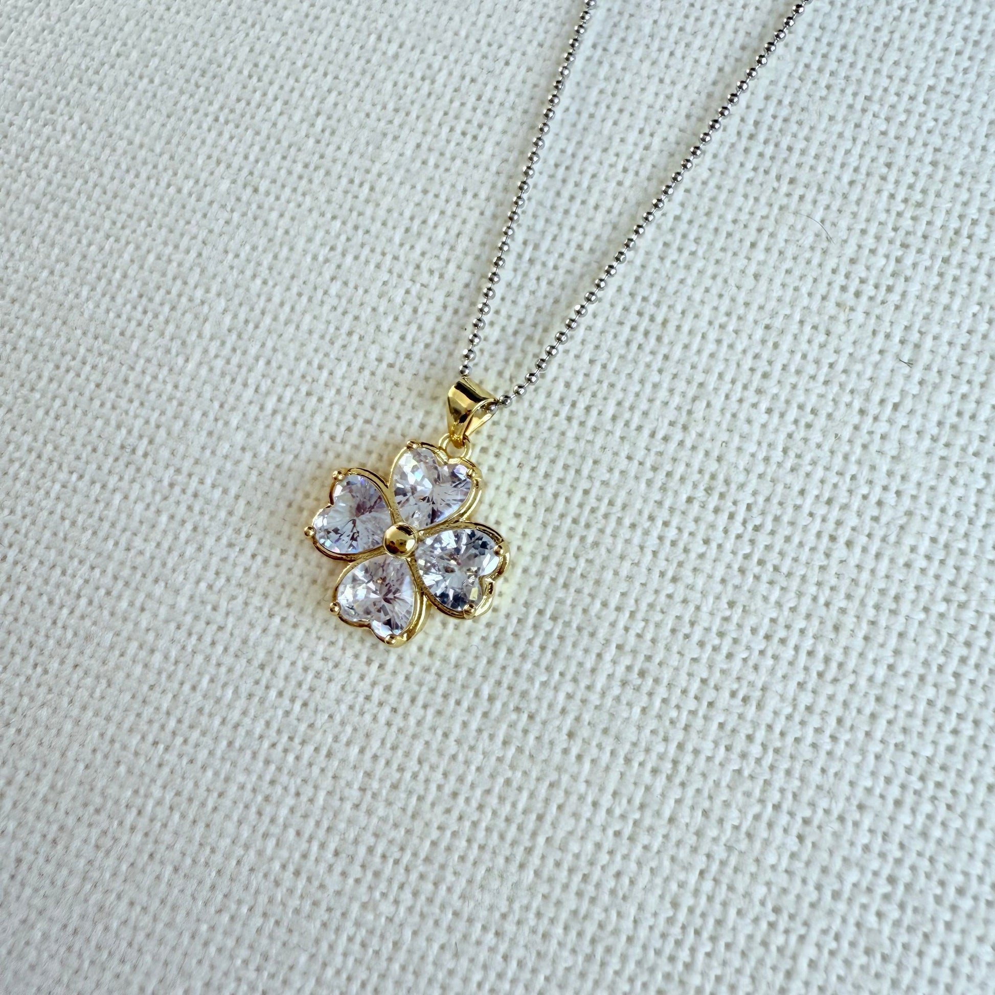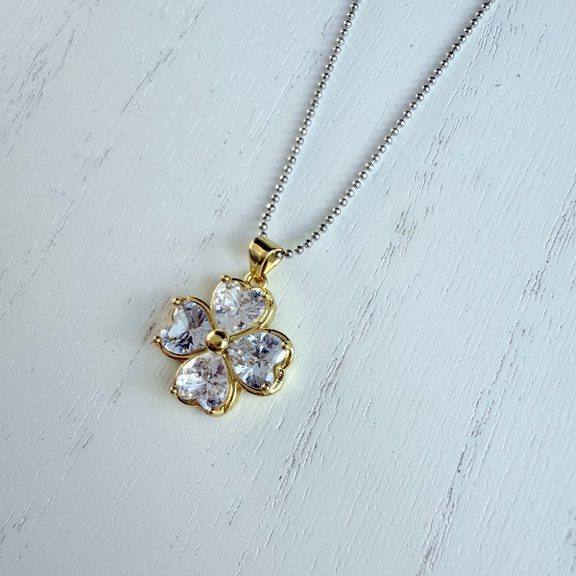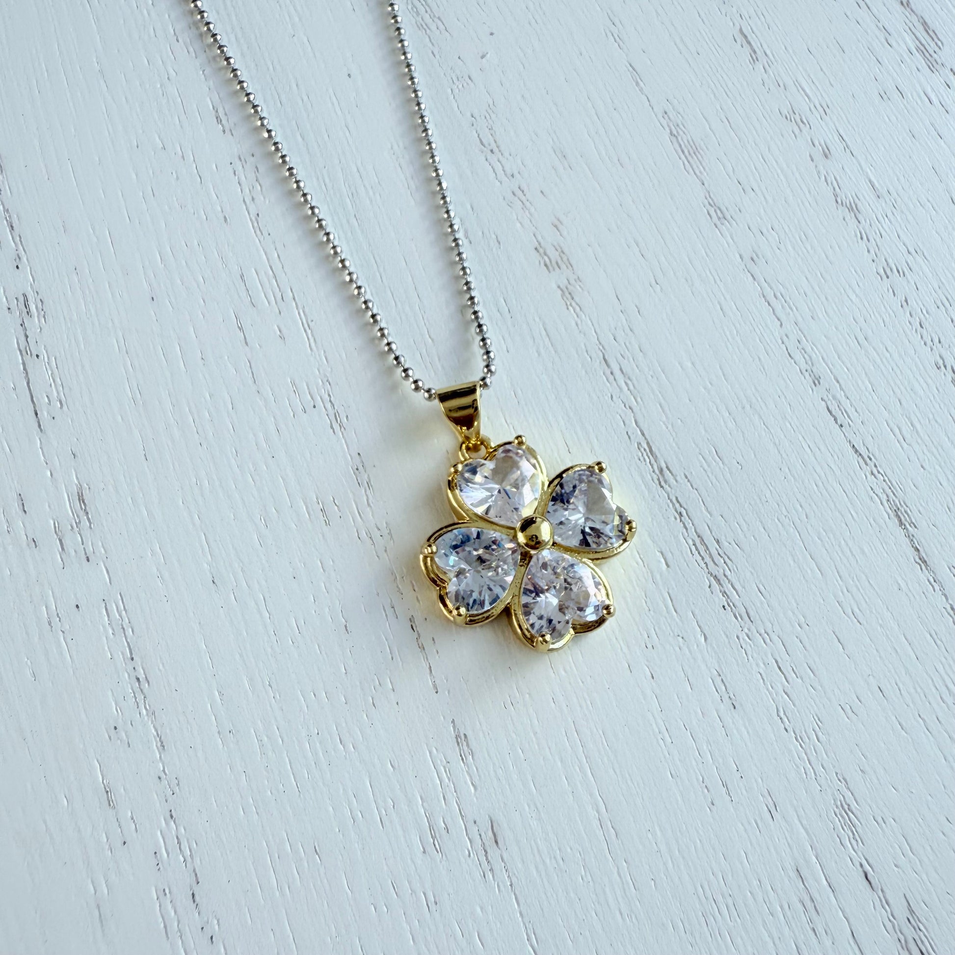 Une pièce moderne et féminine qui marie les tons argent et or, un clin d'œil parfait à la tendance actuelle des métaux mixtes. Le délicat pendentif fleur est réalisé en cristal, apportant un éclat délicat et un charme intemporel. Fabriqué en argent rhodié, ce collier est hypoallergénique et résistant au ternissement, idéal au quotidien.