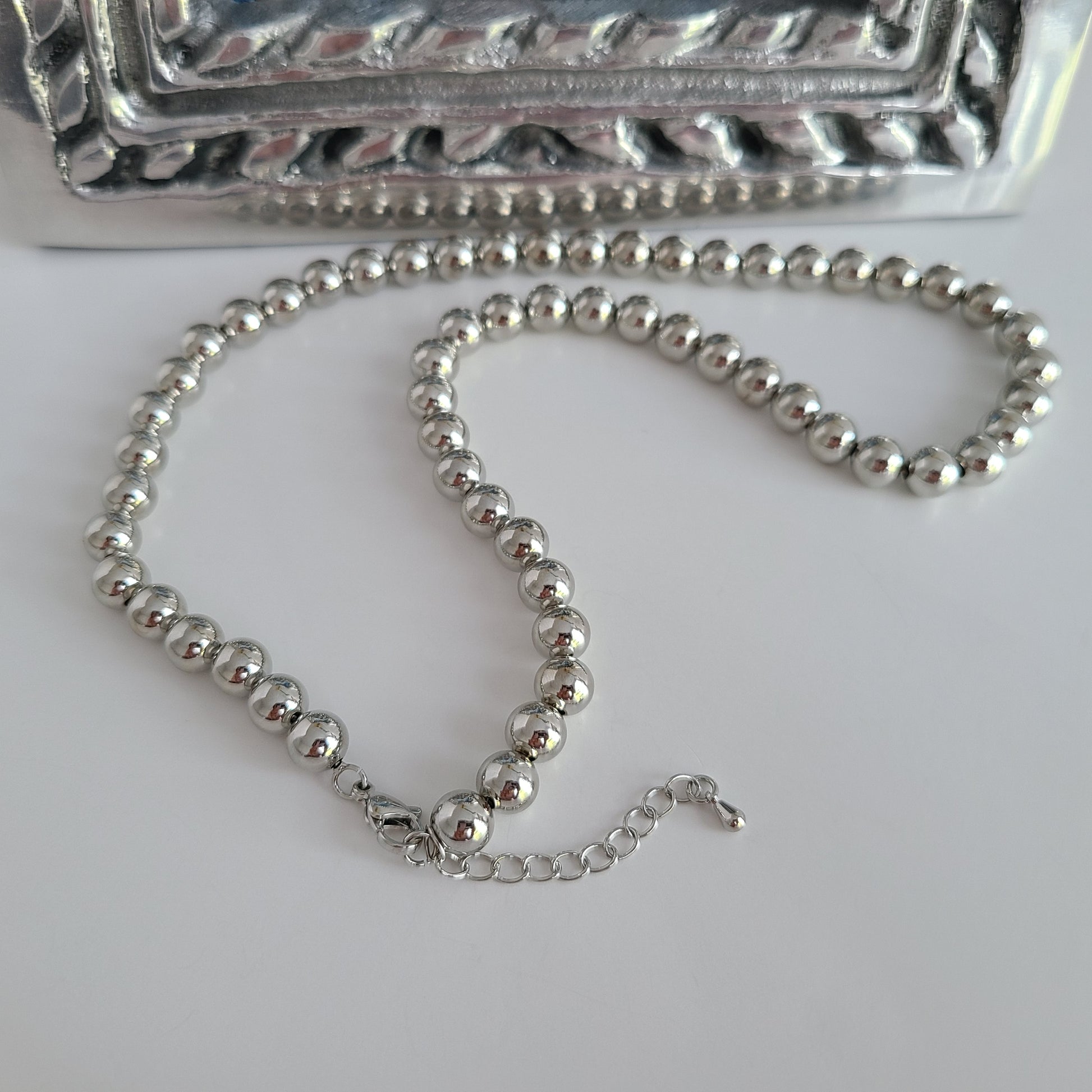 Magnifique collier épais réalisé avec une chaîne à billes en argent rhodié.