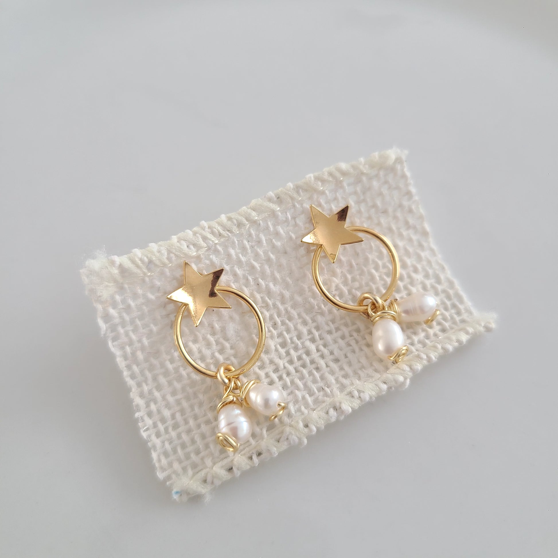 L'élégance minimaliste à son paroxysme. Ces boucles d'oreilles en or rempli 14 carats sont ornées de délicates perles d'eau douce naturelles.