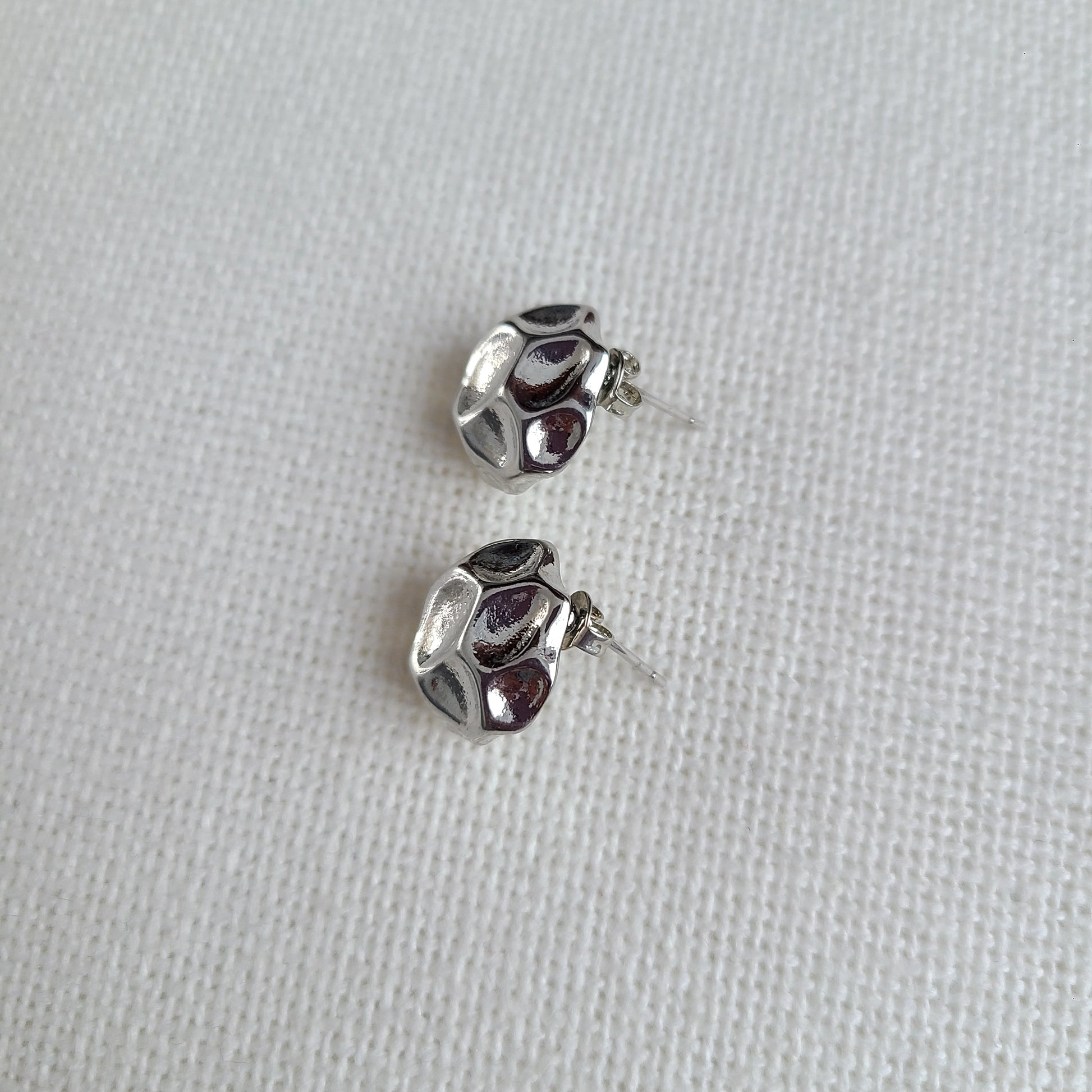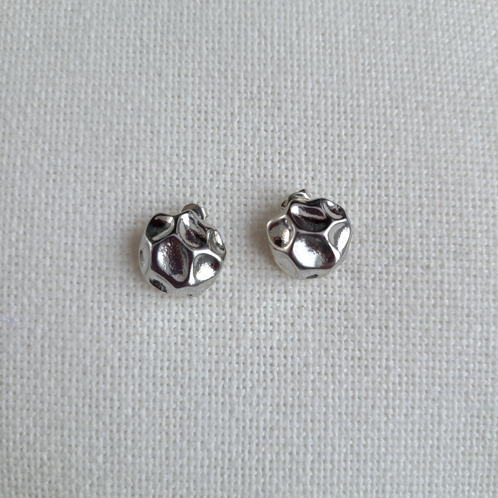 Crafted with a refined wrinkled finish, these rhodium-plated silver earrings capture the raw beauty of texture and light.