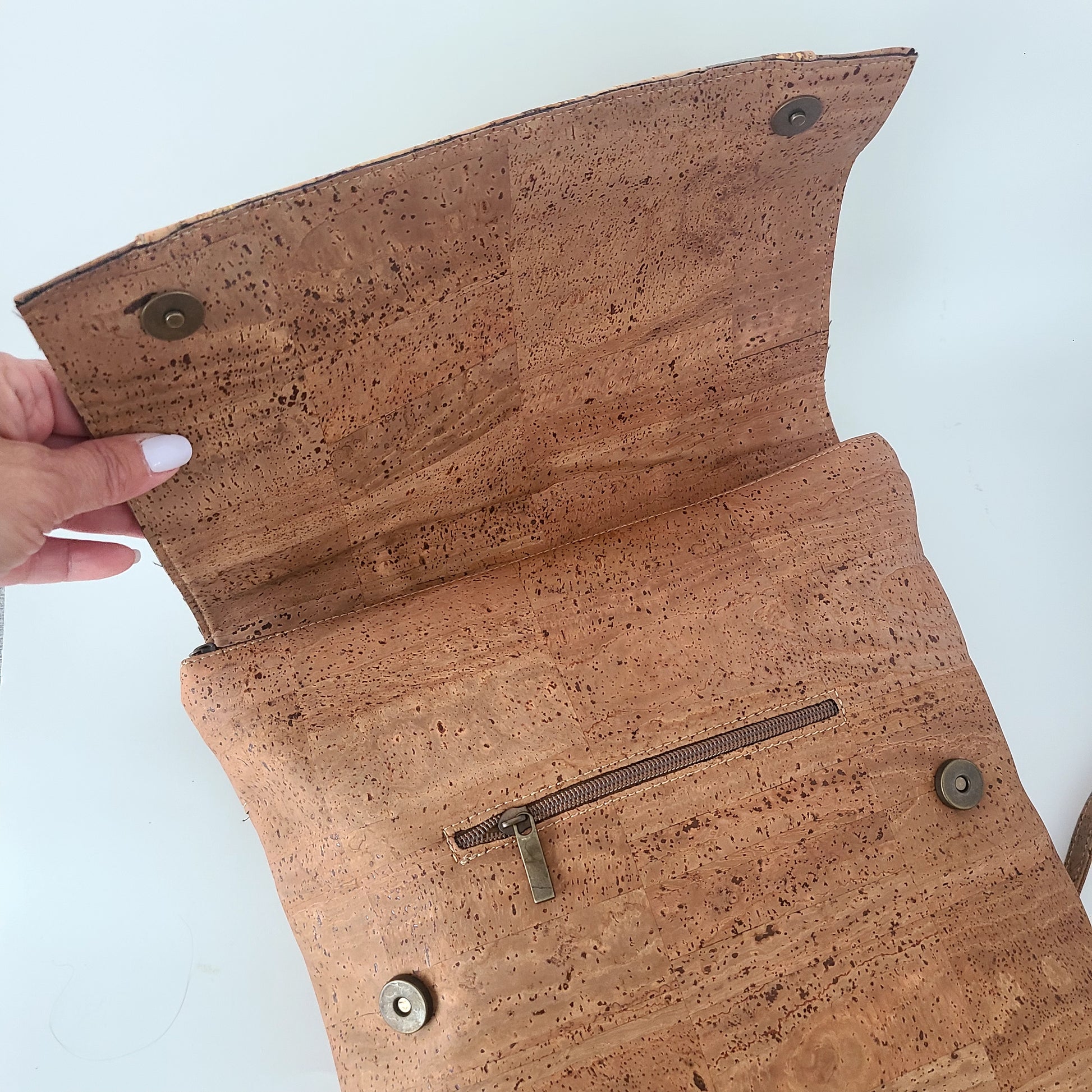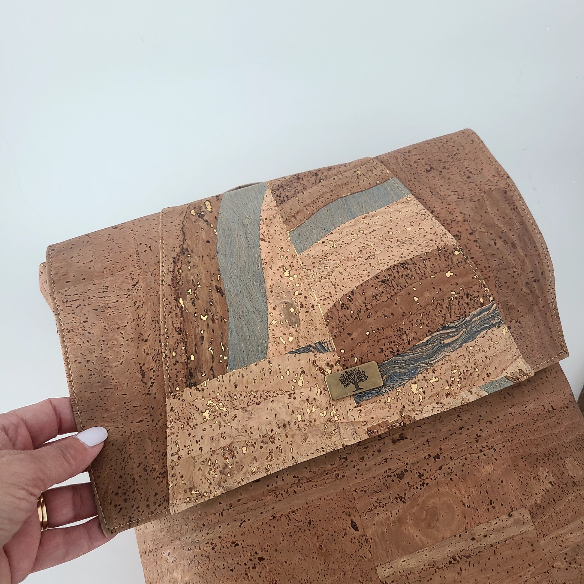 The cork is also durable, water-resistant, lightweight and soft to the touch, making it a suitable alternative to traditional leather handbags.
