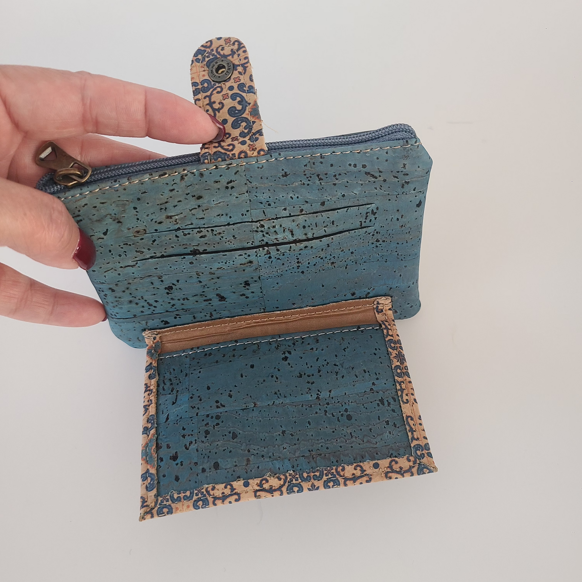 Elegant and functional, this light blue wallet features a perfectly coordinated design for a refined look.