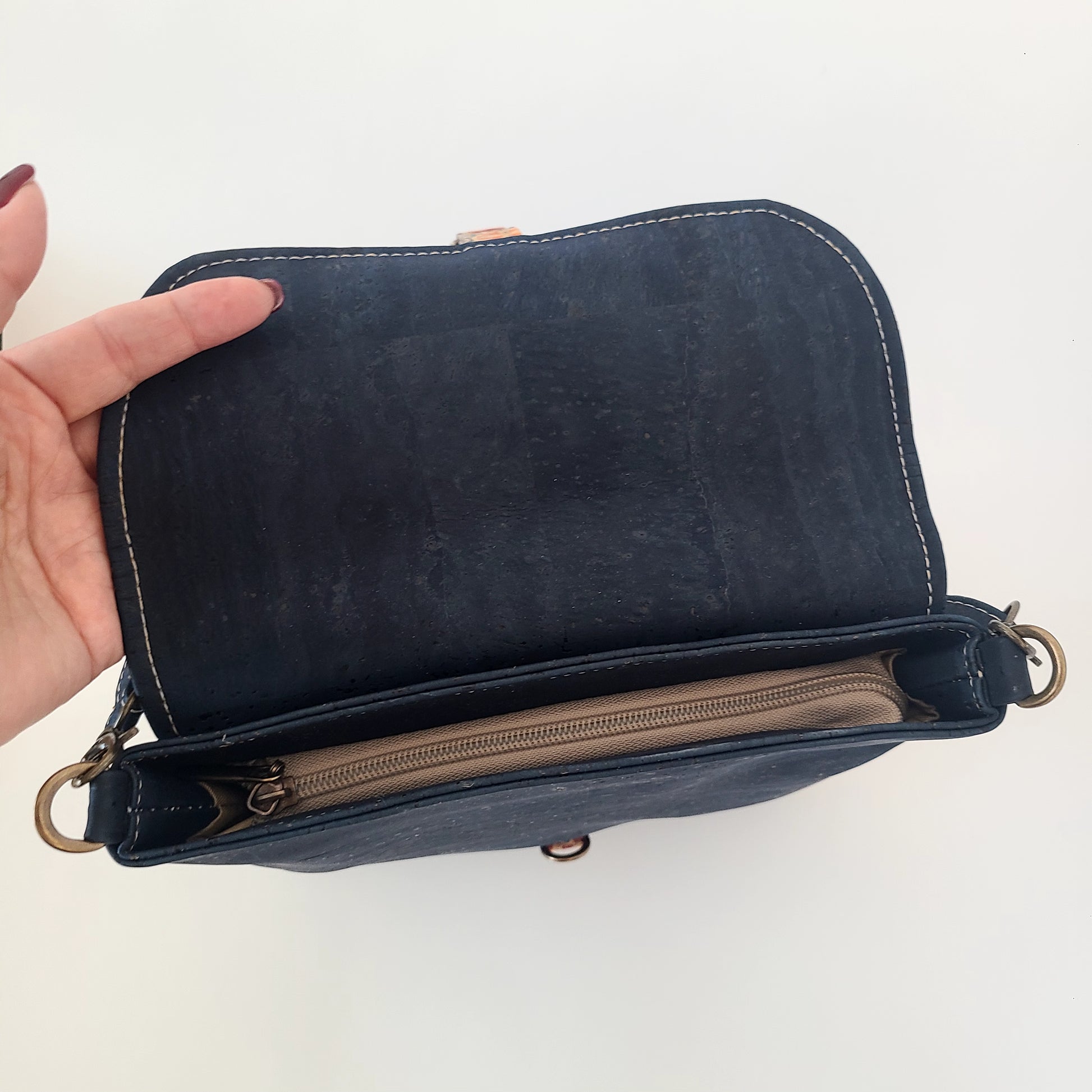 This unique handbag is crafted from 100% cork, a natural, vegan, hypoallergenic, and eco-friendly material. Not only is cork sustainable, but it also boasts remarkable durability, water resistance, and a lightweight feel, making it an exceptional alternative to traditional leather handbags. The soft, smooth texture adds a luxurious touch to this practical accessory.