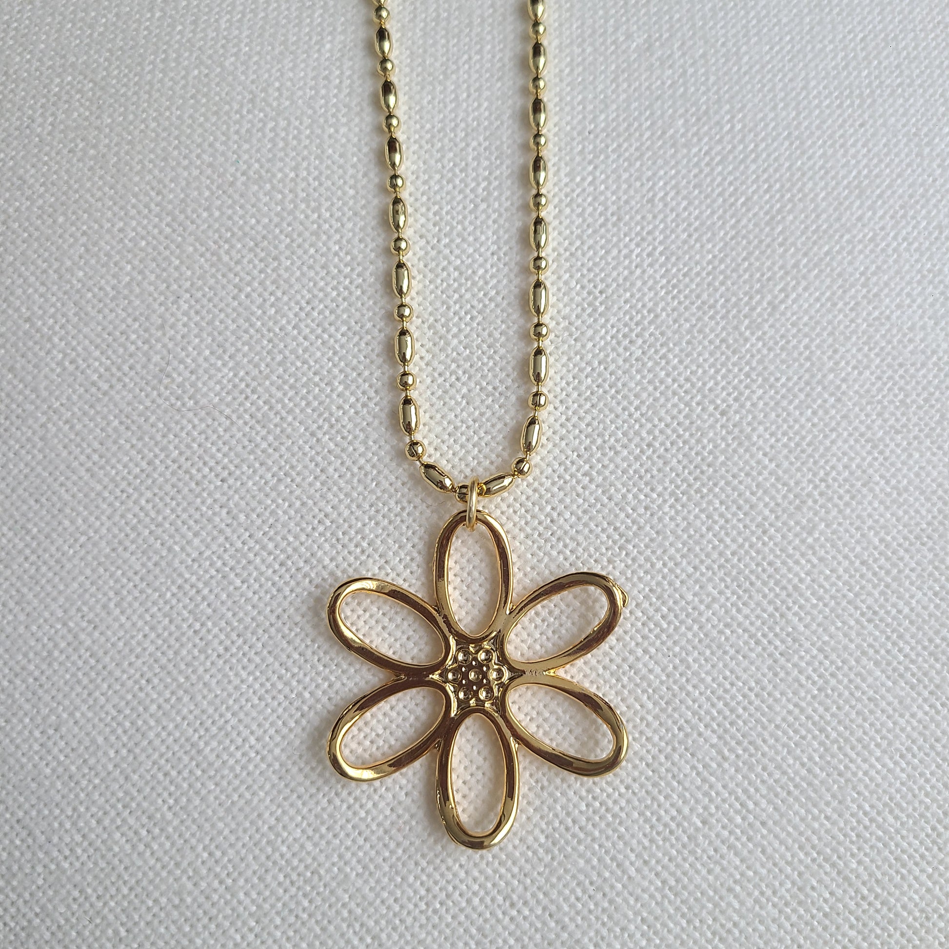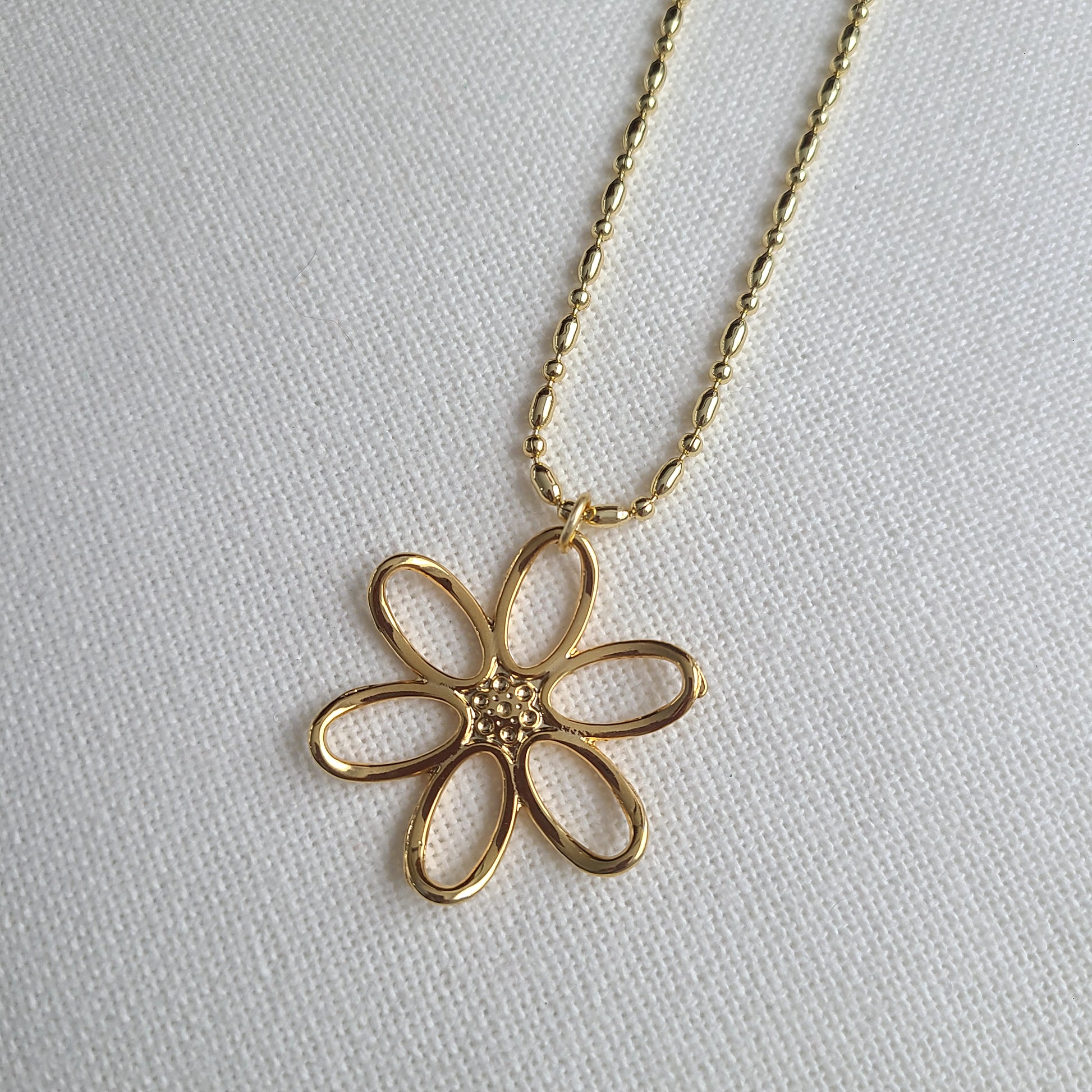 Discover the unique beauty of our Gardenia Necklace, an exclusive piece featuring a larger pendant that truly stands out. The chain is crafted from durable, high-quality 14k gold filled, paired with a pendant plated in 24k gold that offers an elegant and lasting shine.