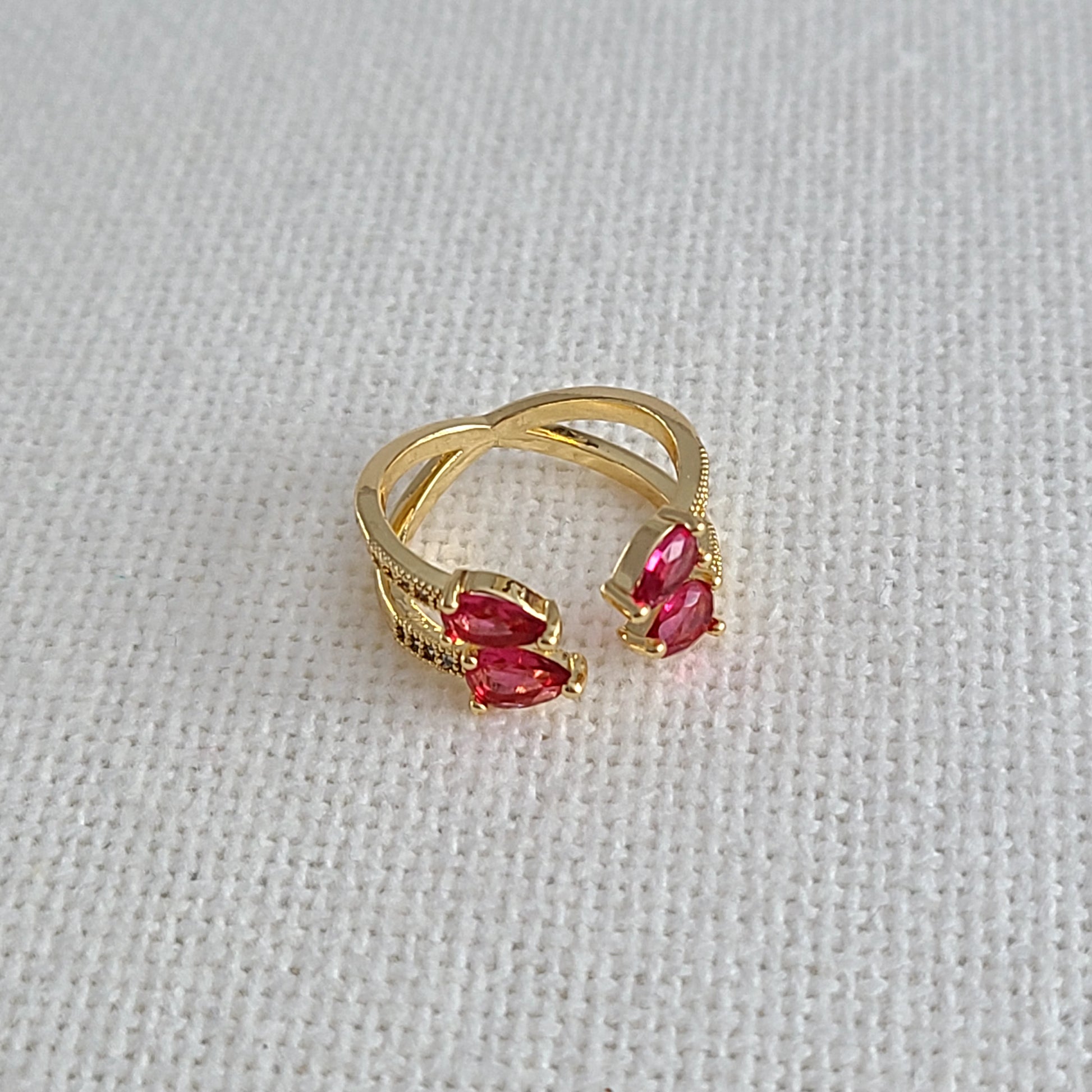 This adjustable Rhodium ring, a precious metal derived from platinum, combines luxury and resilience in a single piece. Its gold finish with delicate pink crystals, gives it an exceptional, long-lasting shine.