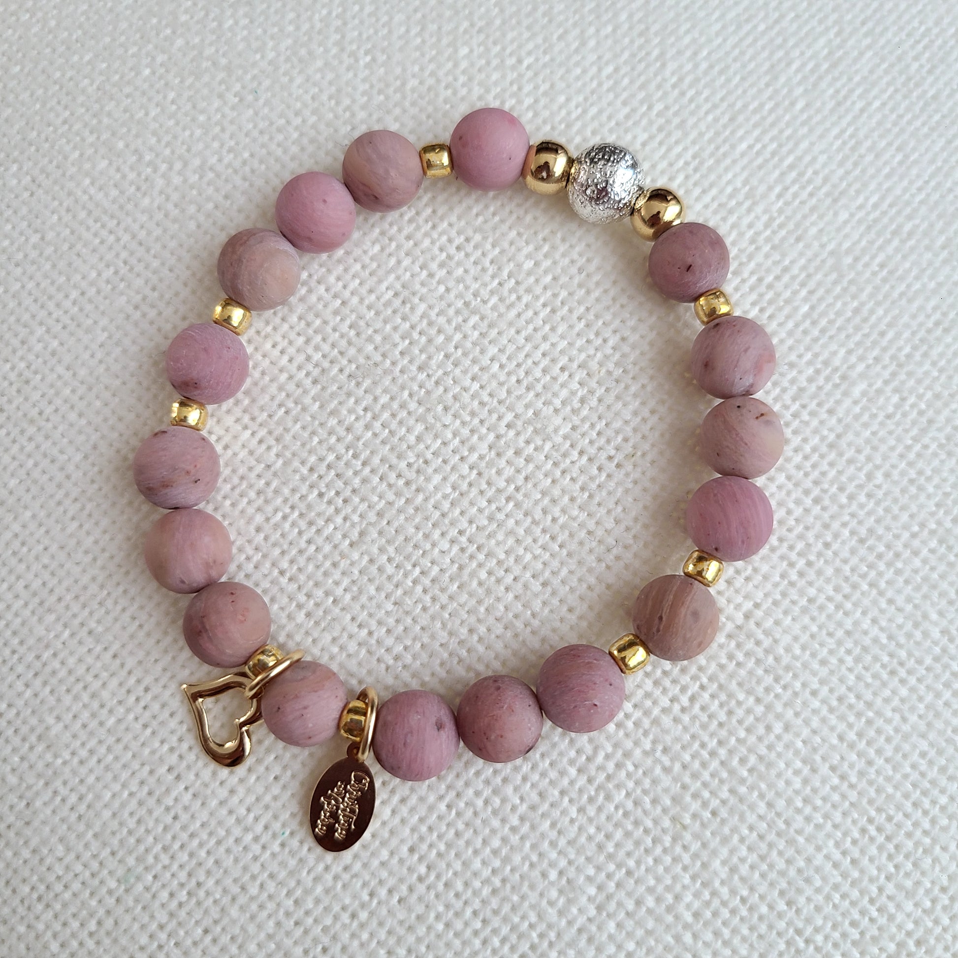 A piece that speaks straight to the heart. Handcrafted with love, this bracelet features soft pink Rhodonite stones — known for symbolizing love, compassion, and emotional harmony.
