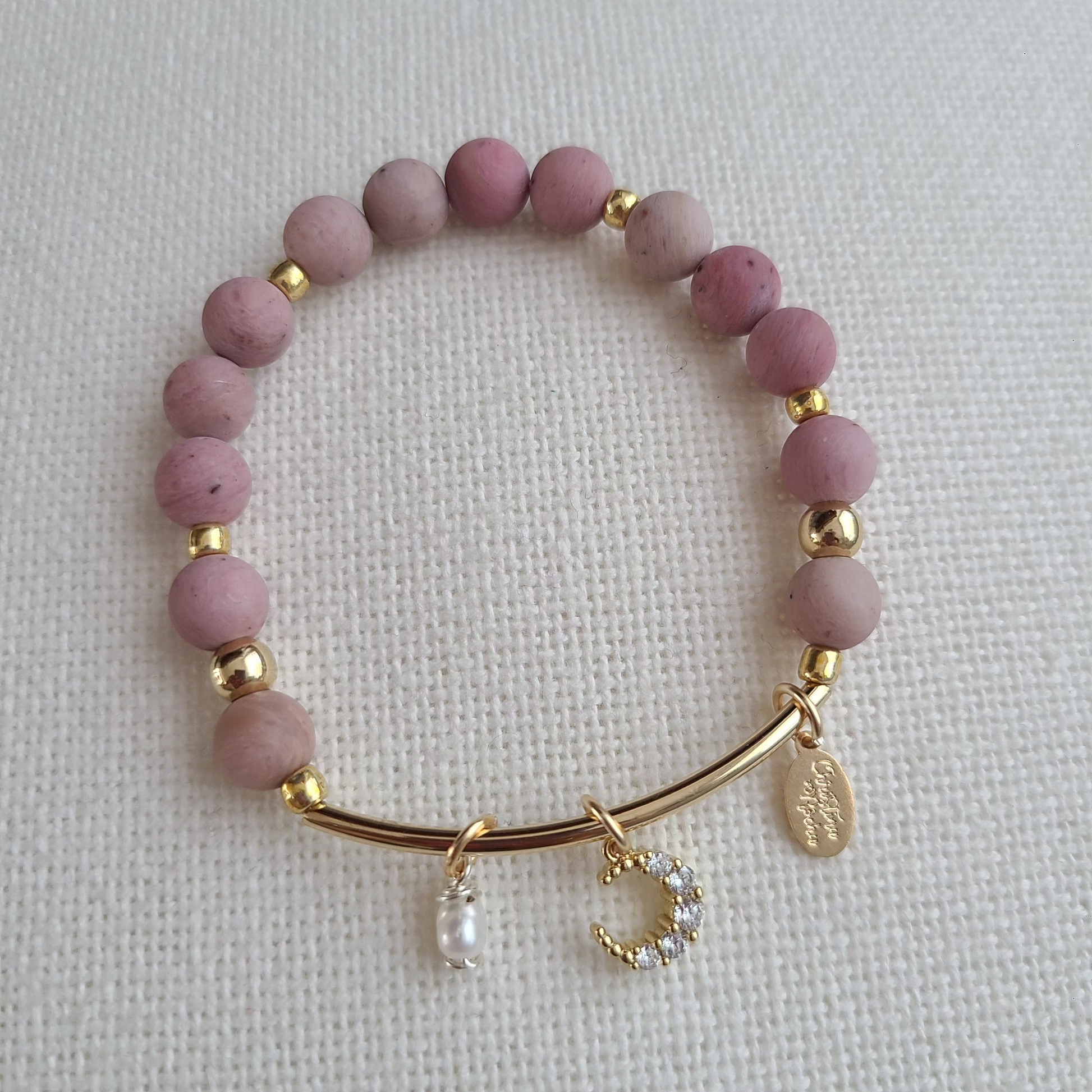 Discover the delicate beauty and unique energy of this handcrafted bracelet, designed for those who appreciate natural elegance and fine details. Each piece features the soft, vibrant hues of pink Rhodonite, a stone symbolizing love and emotional balance.