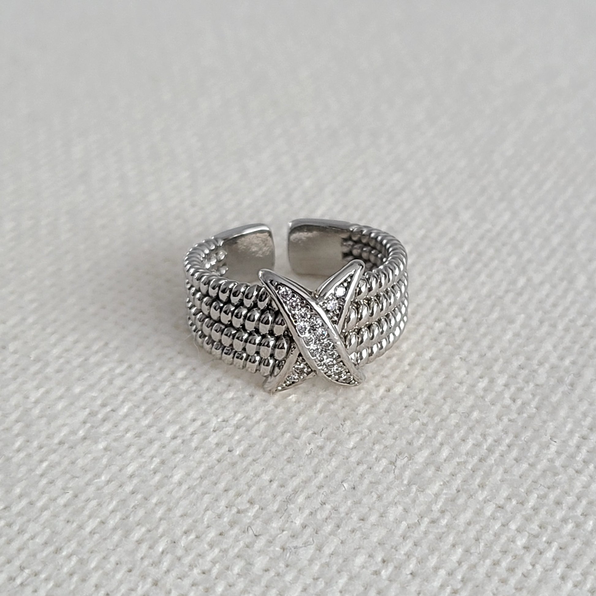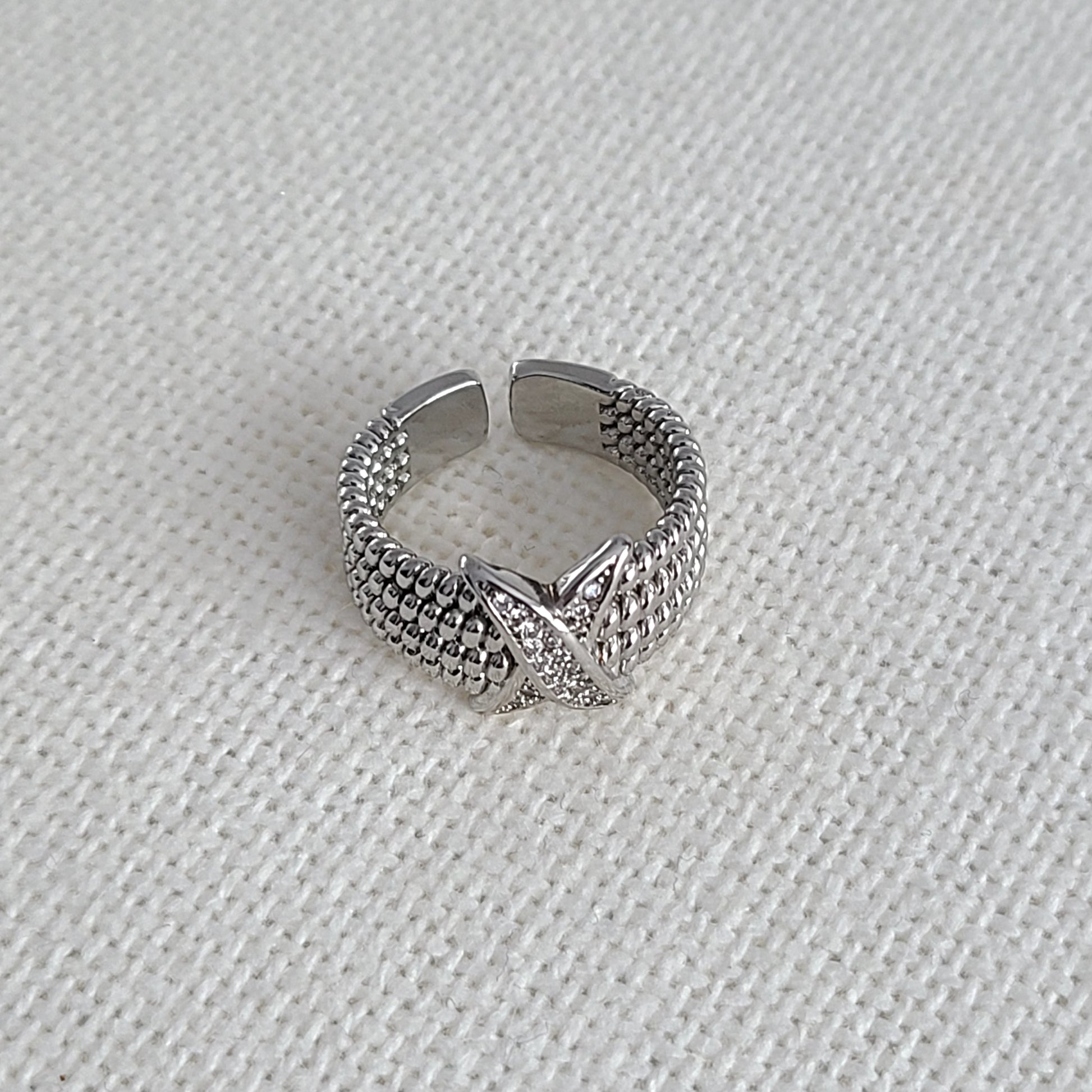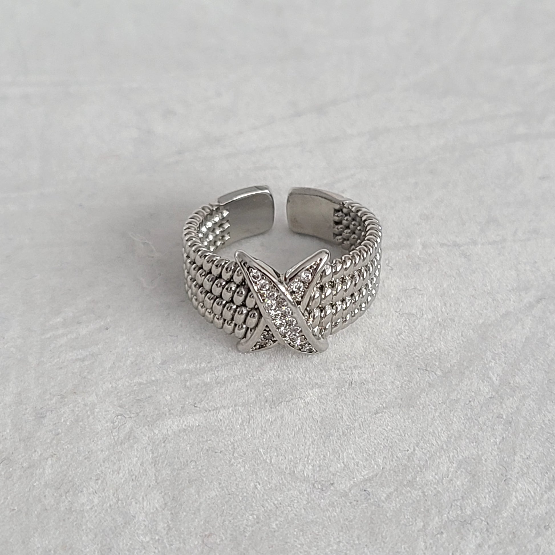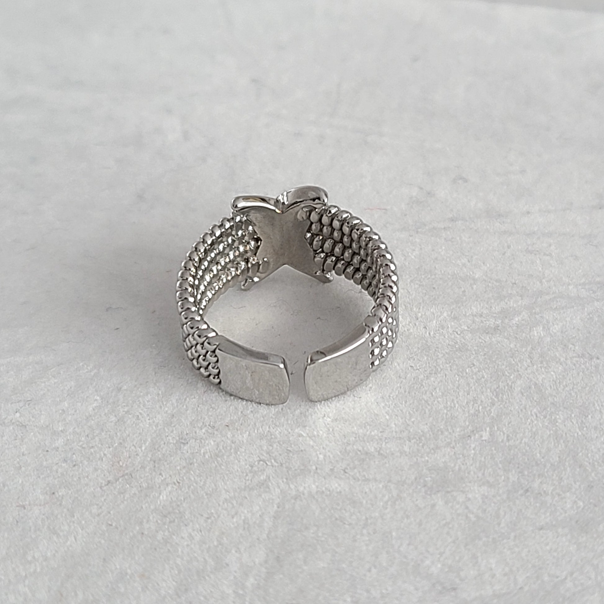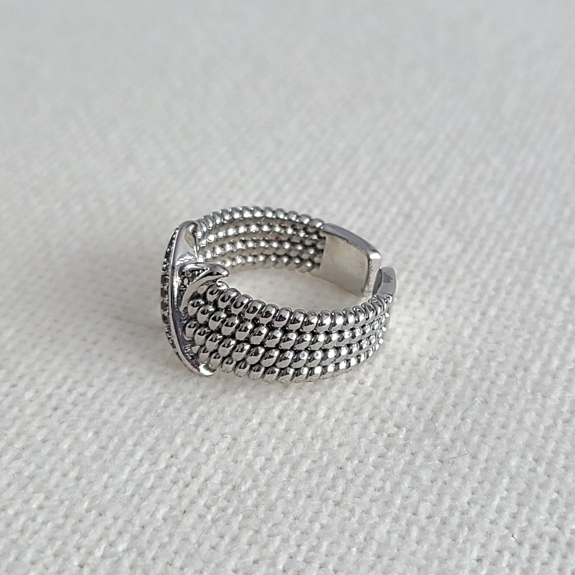 This adjustable Rhodium ring, a precious metal derived from platinum, combines luxury and resilience in a single piece. Its silver finish, gives it an exceptional, long-lasting shine.
