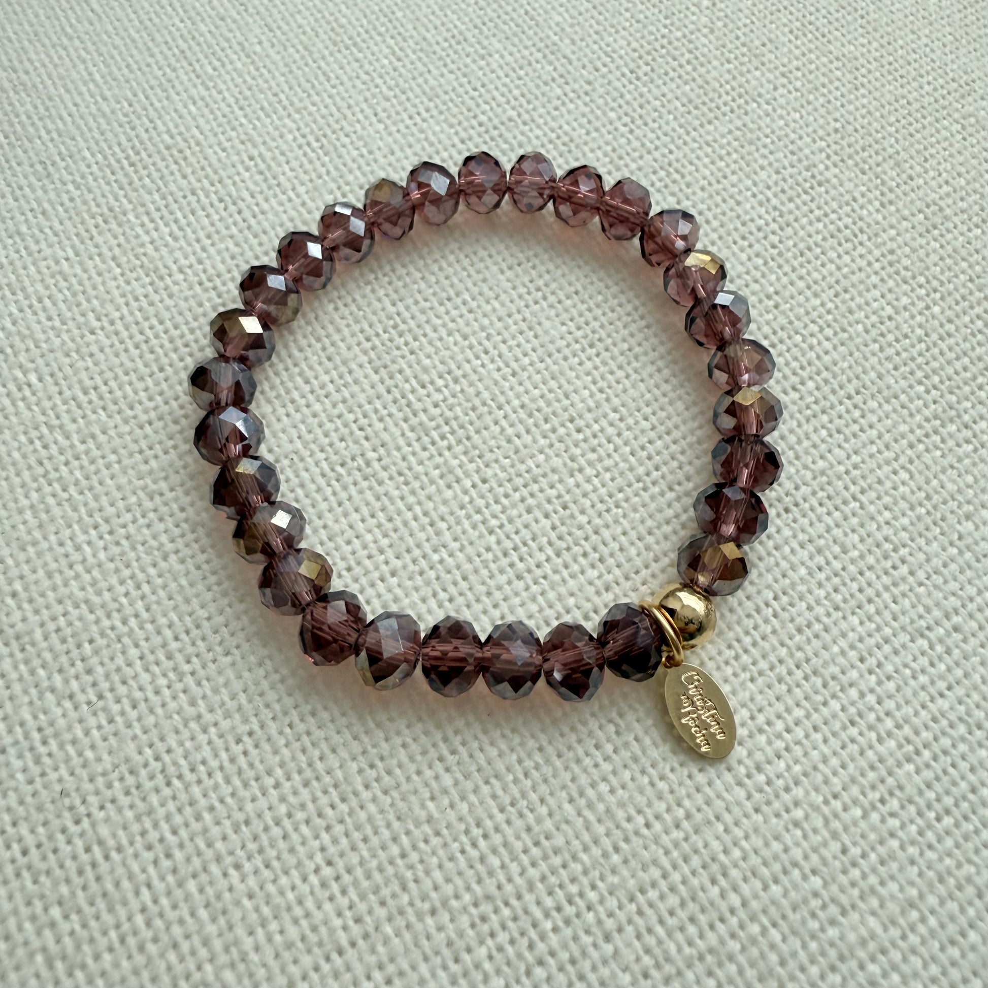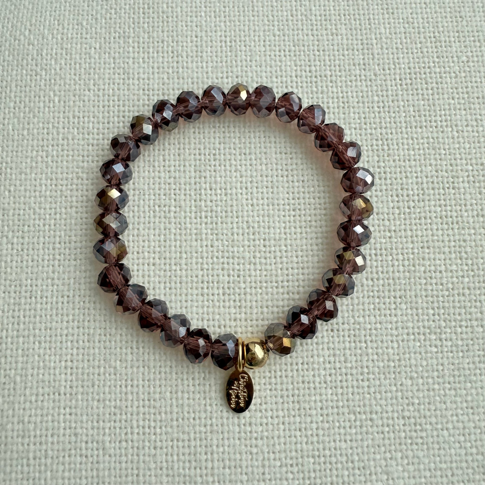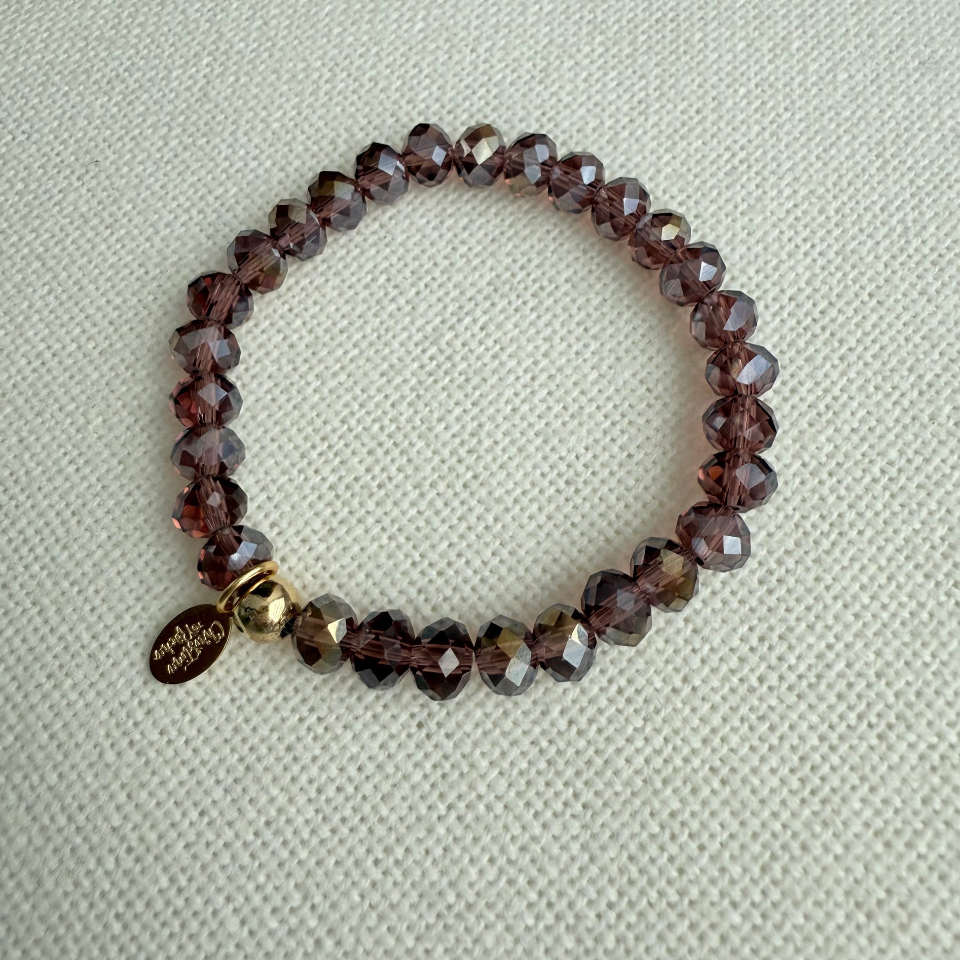 Handmade with 8mm champagne smoky Murano glass beads, this refined bracelet brings a soft, luminous elegance to any look.