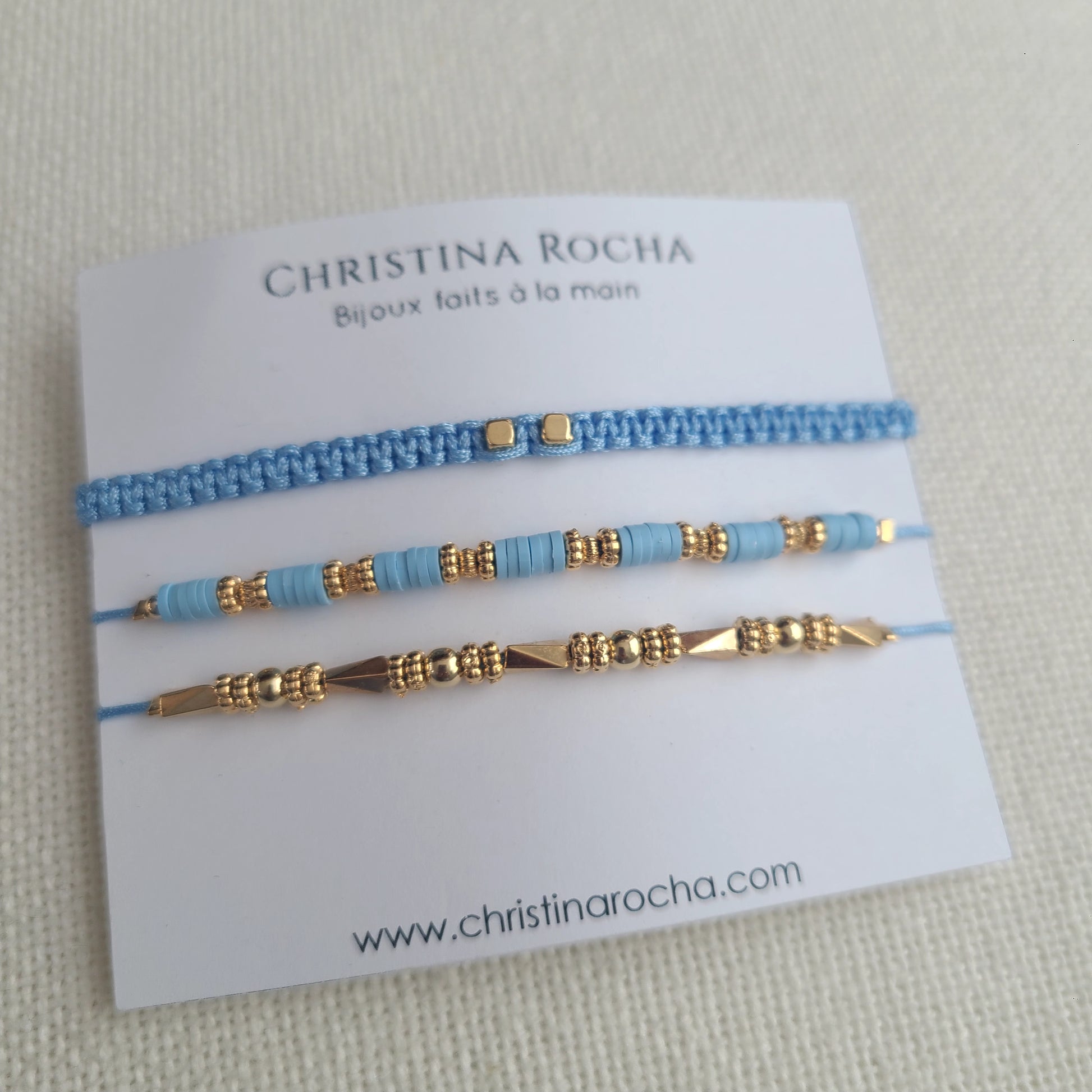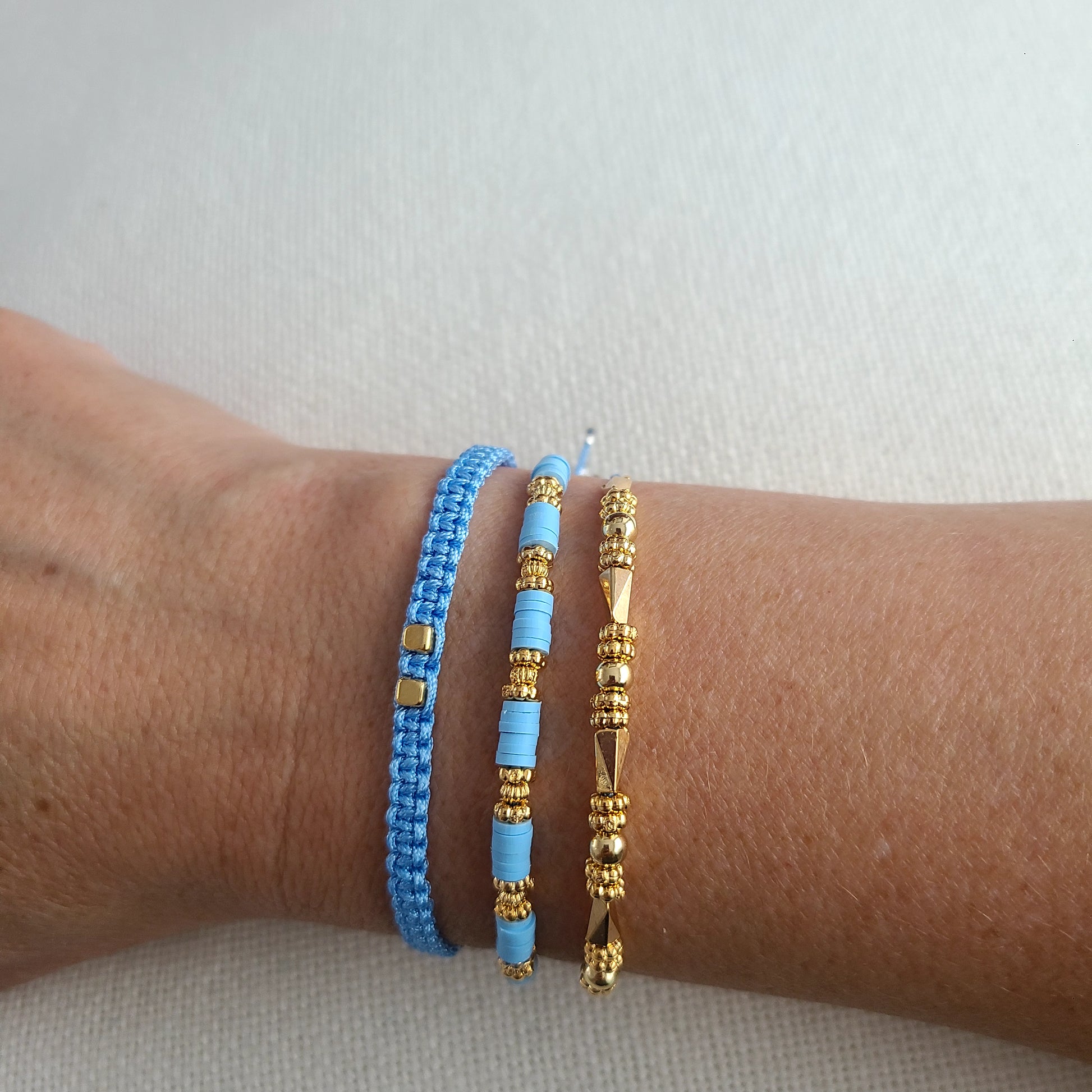 A beautiful trio of handcrafted bracelets — combining delicate woven elements, natural stones, and subtle gold-filled accents. Each piece is adjustable, feminine, and thoughtfully designed to complement the others.