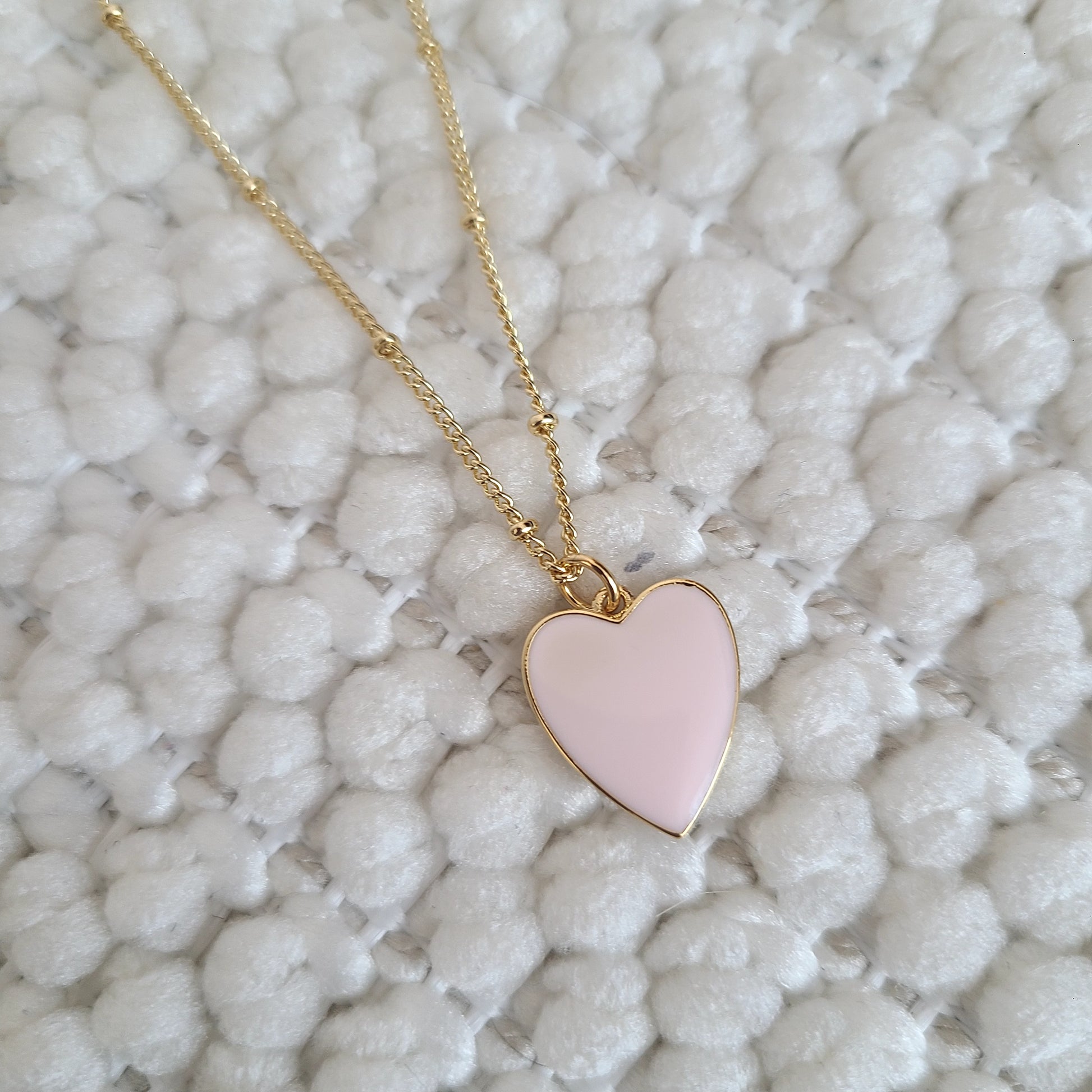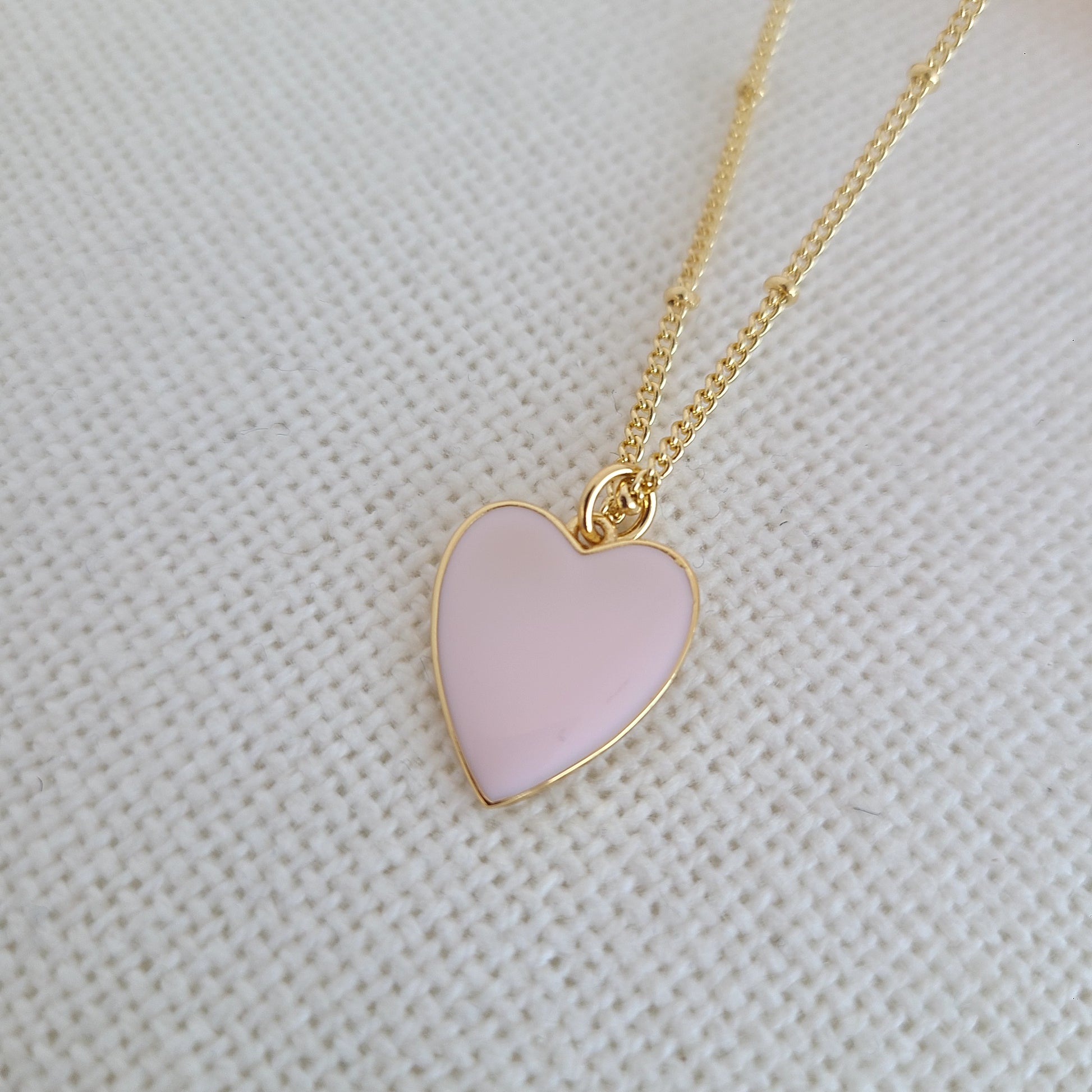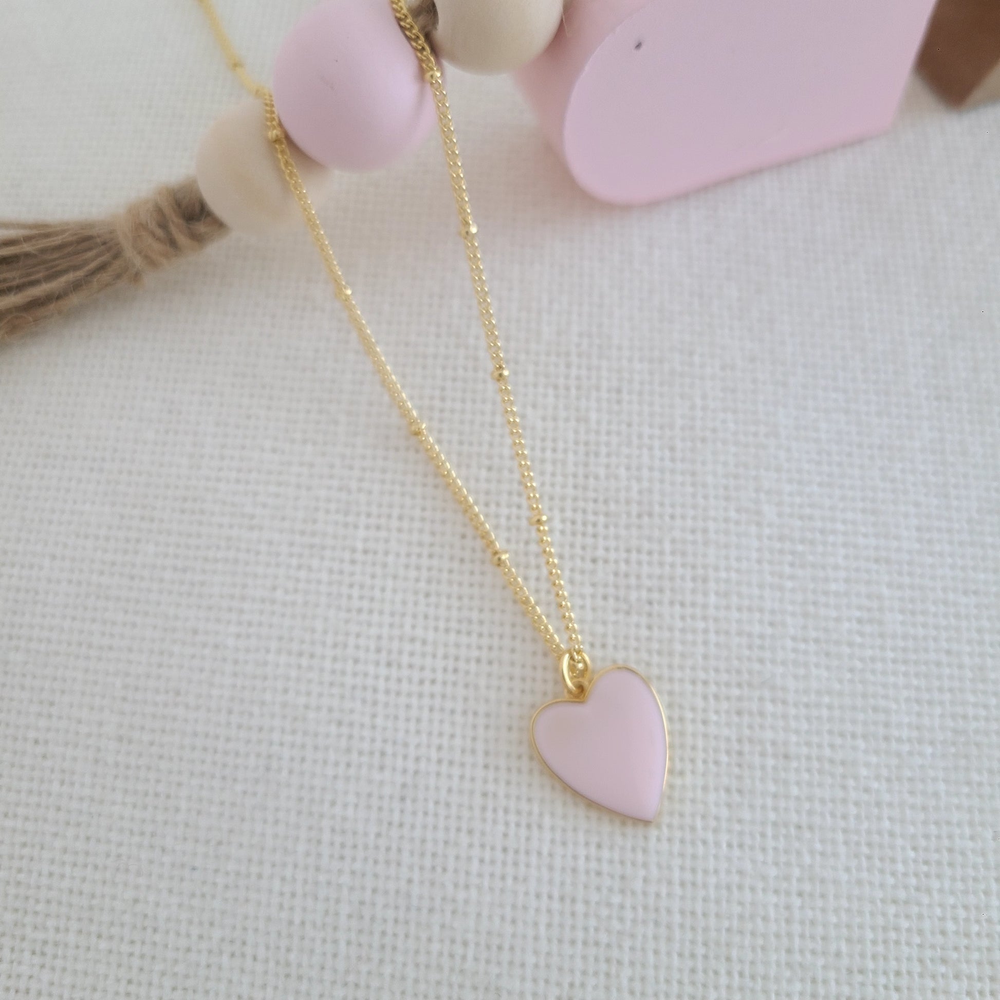 This charming necklace features a pink heart pendant on a 14K gold filled chain, blending sweetness and elegance.