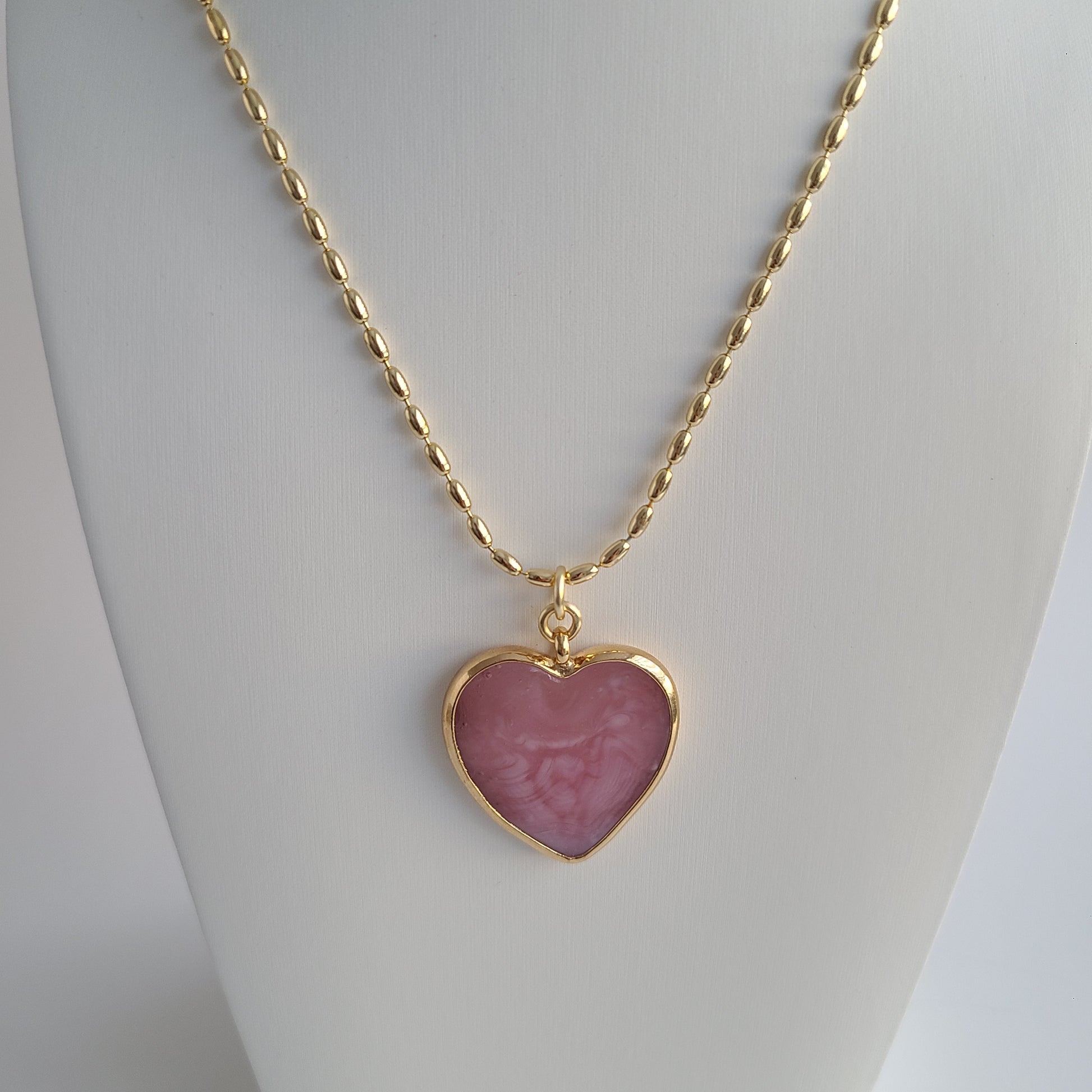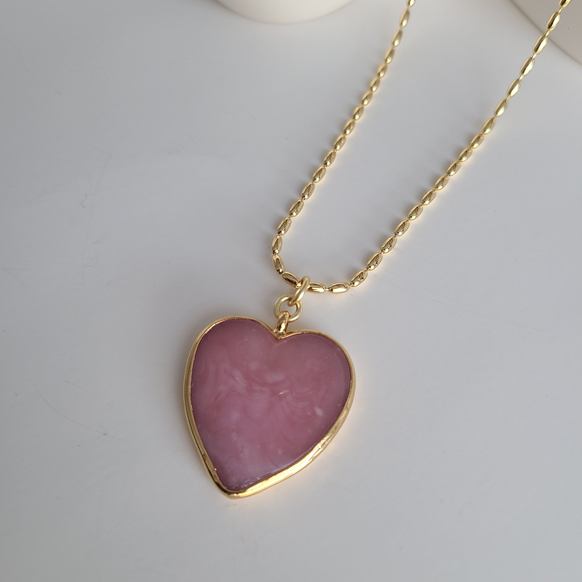 A piece that captures feminine elegance in its purest form. This delicate necklace features a luxurious 14K gold-filled chain and a beautiful pink Murano glass heart pendant, hand-set in gold for a refined, artisanal touch.