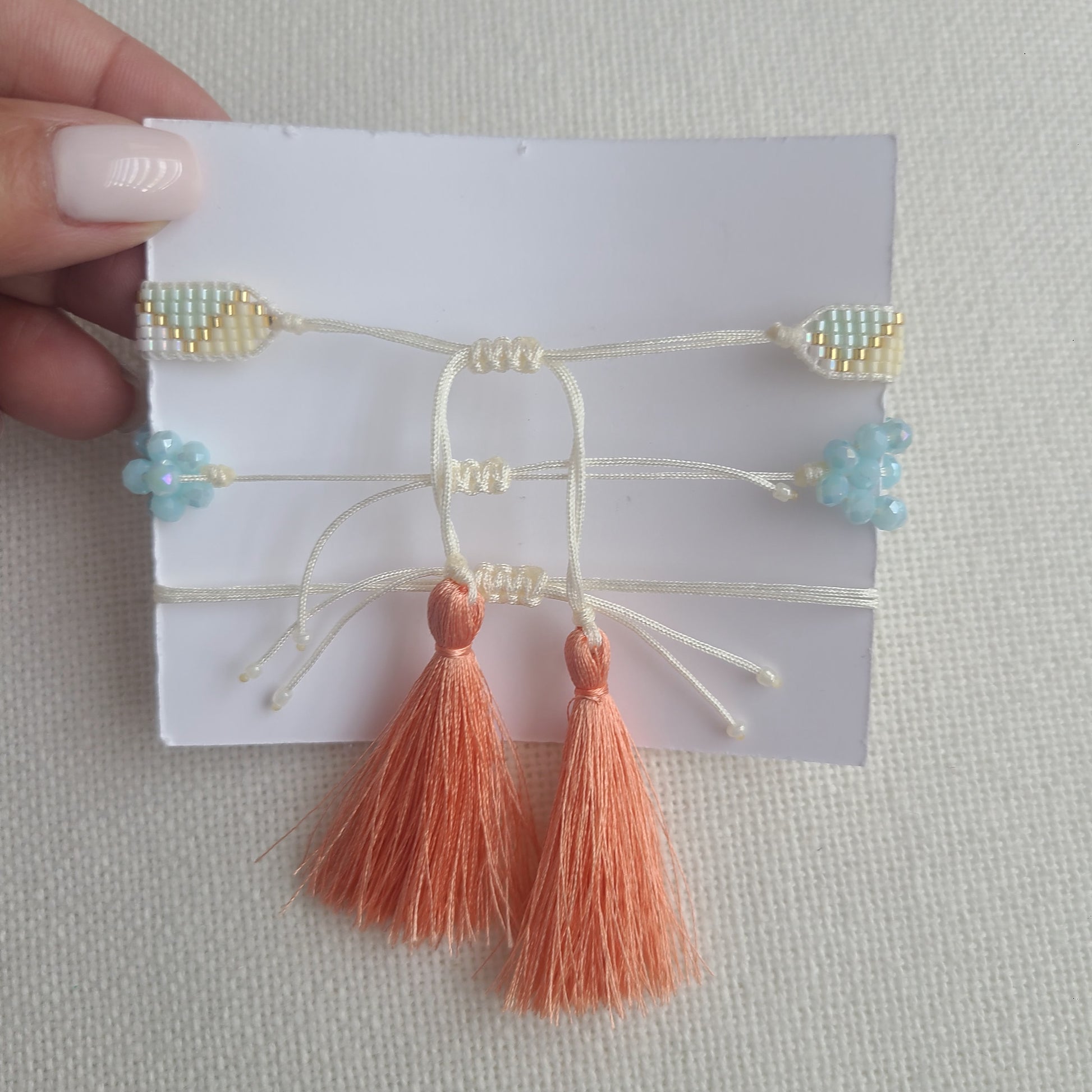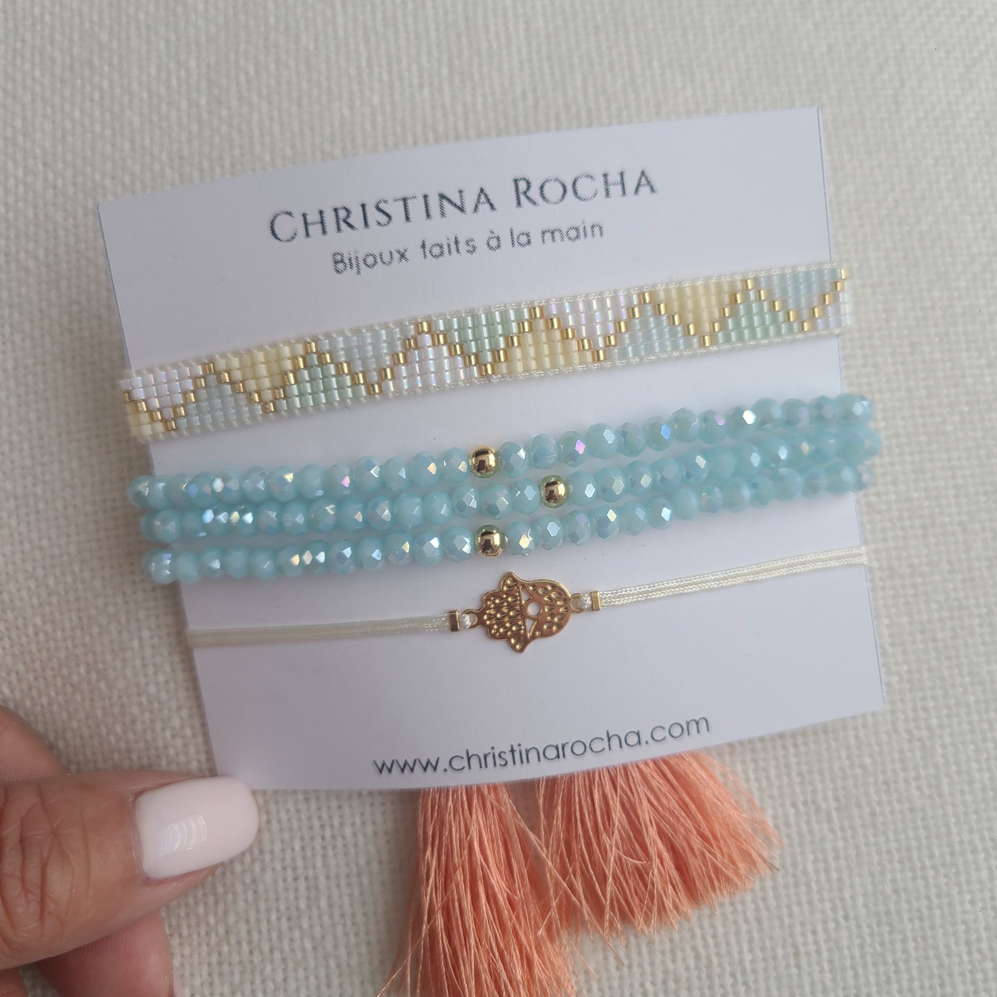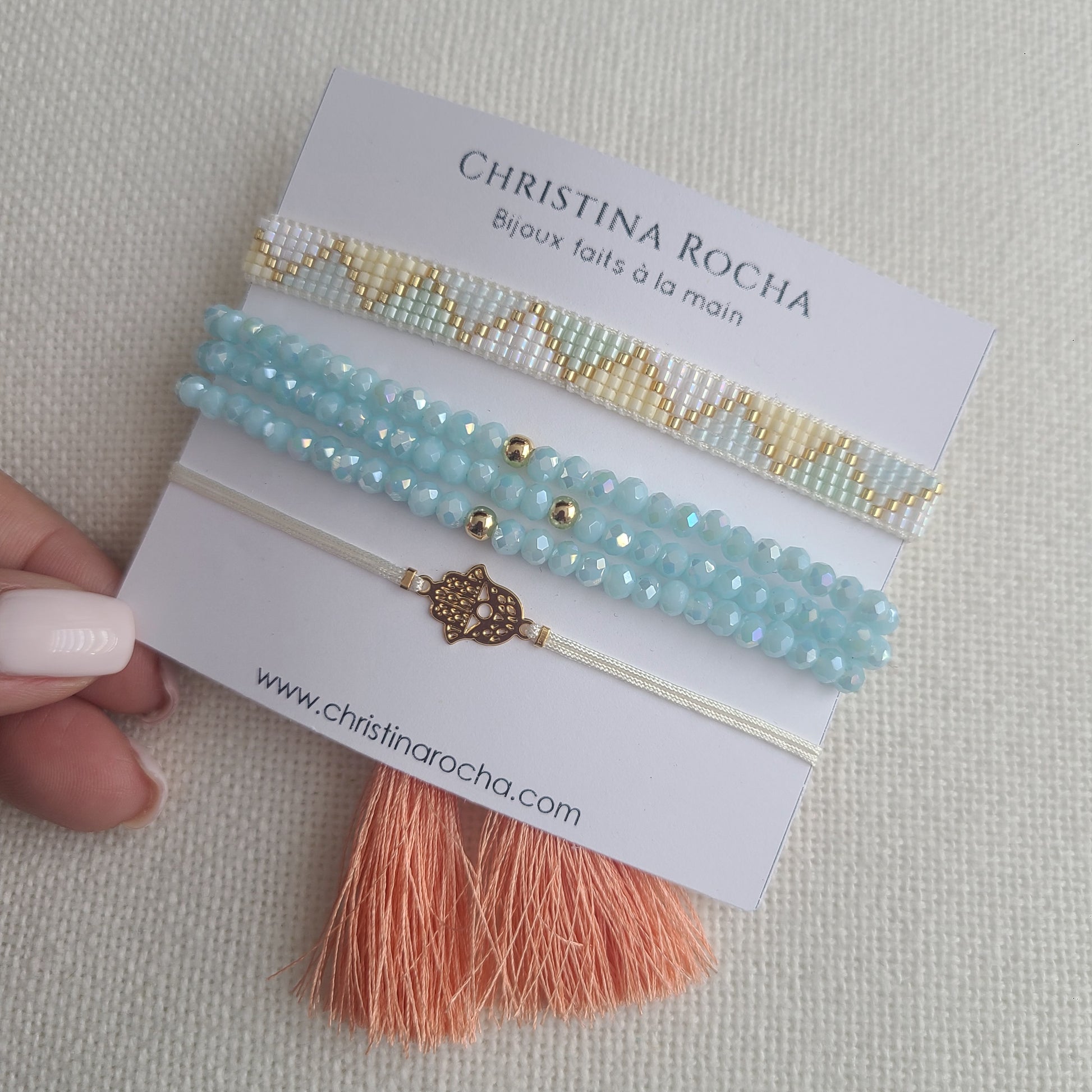 A beautiful trio of handcrafted bracelets — combining delicate woven elements, natural stones, and subtle gold-filled accents. Each piece is adjustable, feminine, and thoughtfully designed to complement the others.