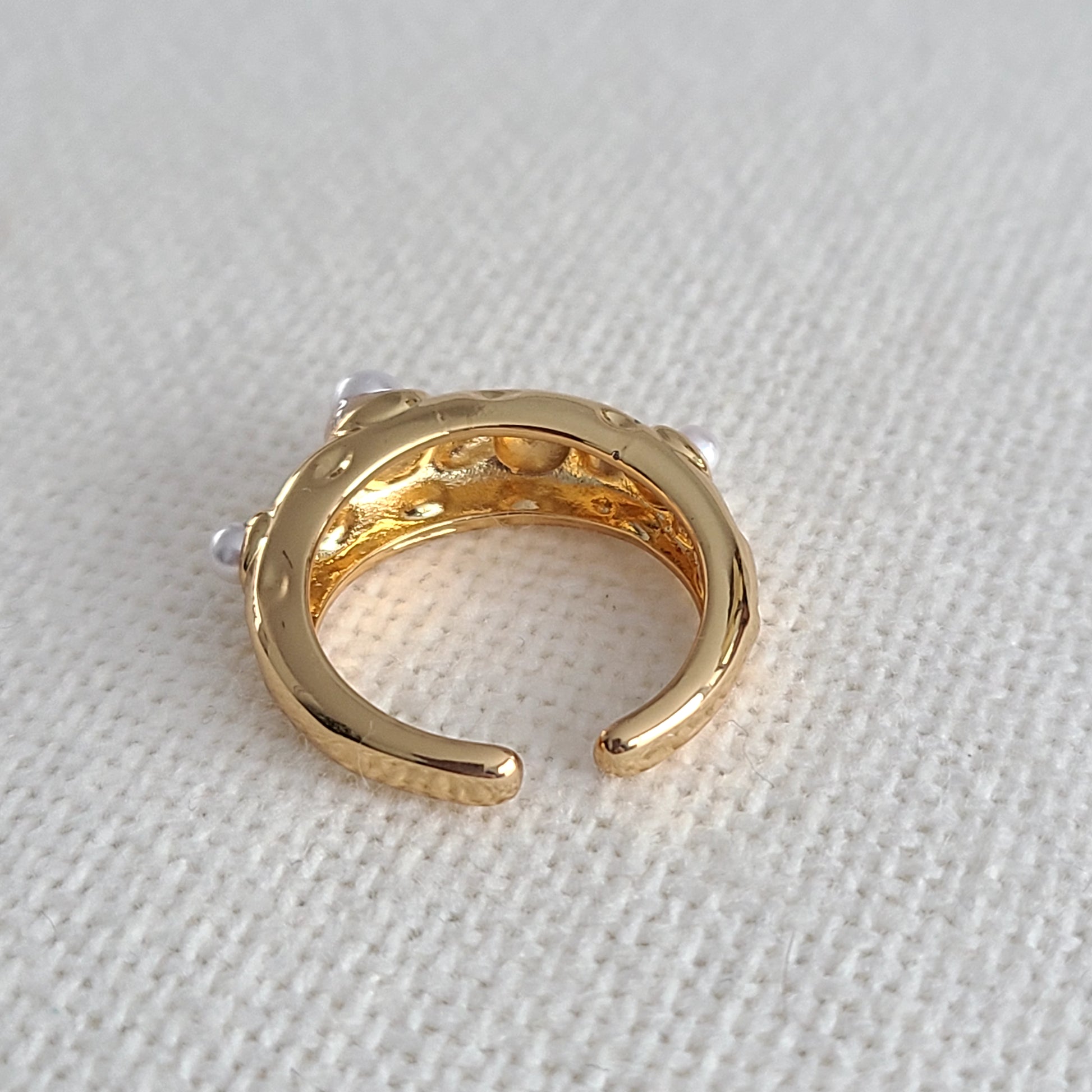 This adjustable Rhodium ring, a precious metal derived from platinum, combines luxury and resilience in a single piece. Its gold finish with delicate pearls, gives it an exceptional, long-lasting shine.